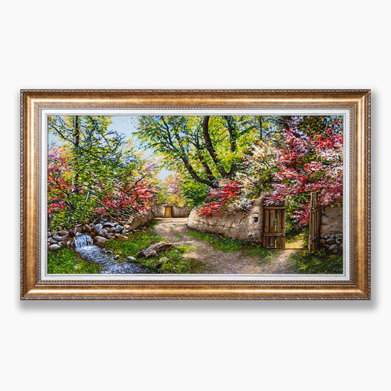 تابلو فرش دستبافت طرح منظره کوچه باغ بهار کد 7412513