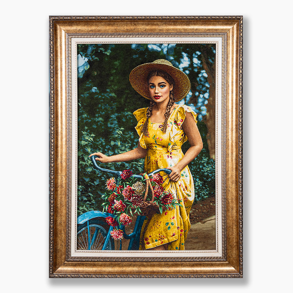 تابلوفرش «دختر گل‌فروش» از مجموعه‌ی چهره‌ها، روایتی لطیف از معصومیت و زیبایی در قالب هنر ایرانی است.این اثر نفیس با چله‌ی ابریشم، پشم لطیف مرینوس و گل‌های ابریشمی در تبریز بافته شده و با ۵۰ رج بافت دقیق، چهره‌ای زنده و پر از احساس را به نمایش می‌گذارد.ابعاد بدون قاب ۱۰۰×۶۵ و با قاب ۱۲۵×۹۰ سانتی‌متر است.