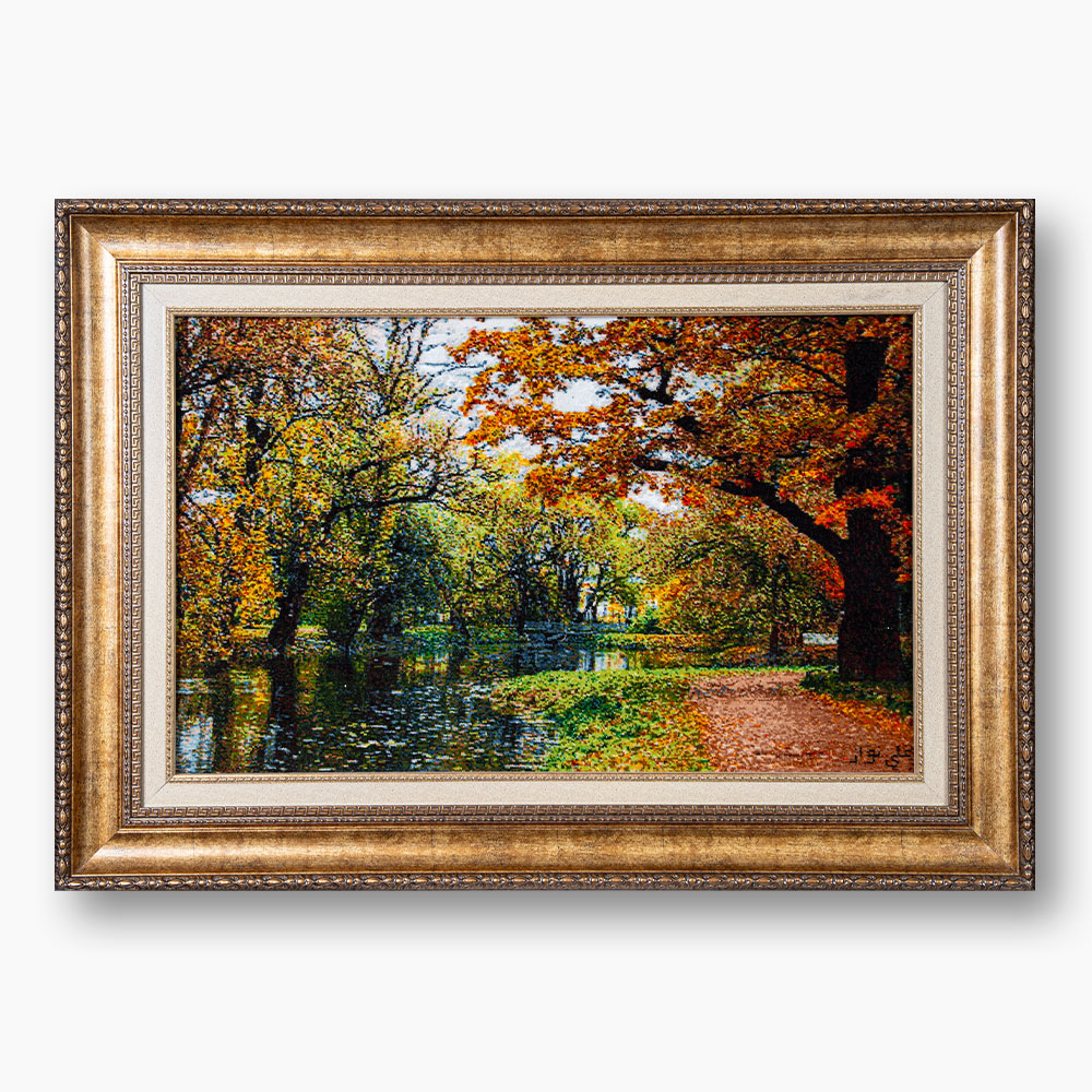تابلو فرش دستبافت طرح منظره برکه پاییز