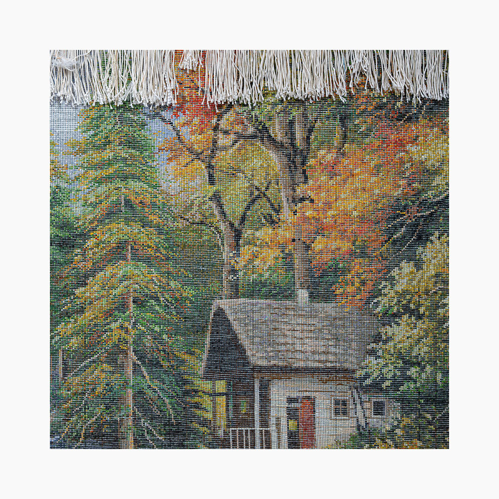 ۵۰ رج بافت دقیق در کنار هارمونی رنگهای ملایم، تصویری زنده از چشماندازی اروپایی را خلق کرده است که در آن، نور و سایه بهزیبایی در هم تنیدهاند.