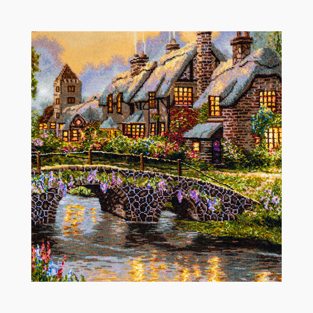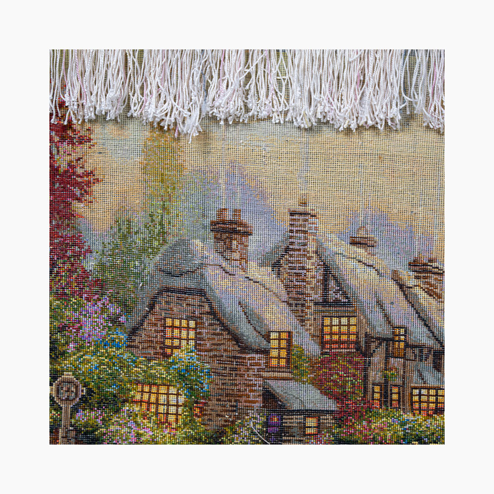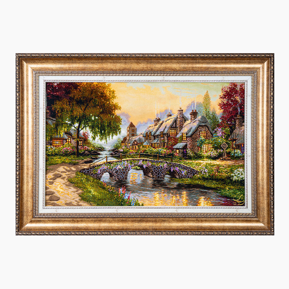 وجود ۵۵ رج بافت ظریف و امضای بافنده نشان از اصالت و کیفیت بالای این تابلو دارد. رنگهای ملایم و هارمونی هماهنگ آن، حسی از سکون و لطافت اروپایی را با گرمای هنر ایرانی در هم میآمیزد. ترکیب نور، سایه و جزئیات طبیعت در این اثر، بیننده را به دنیایی آرام و خیالانگیز میبرد.