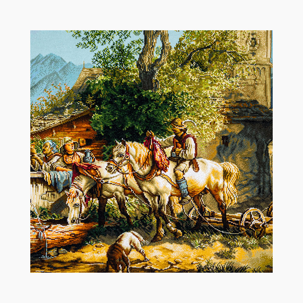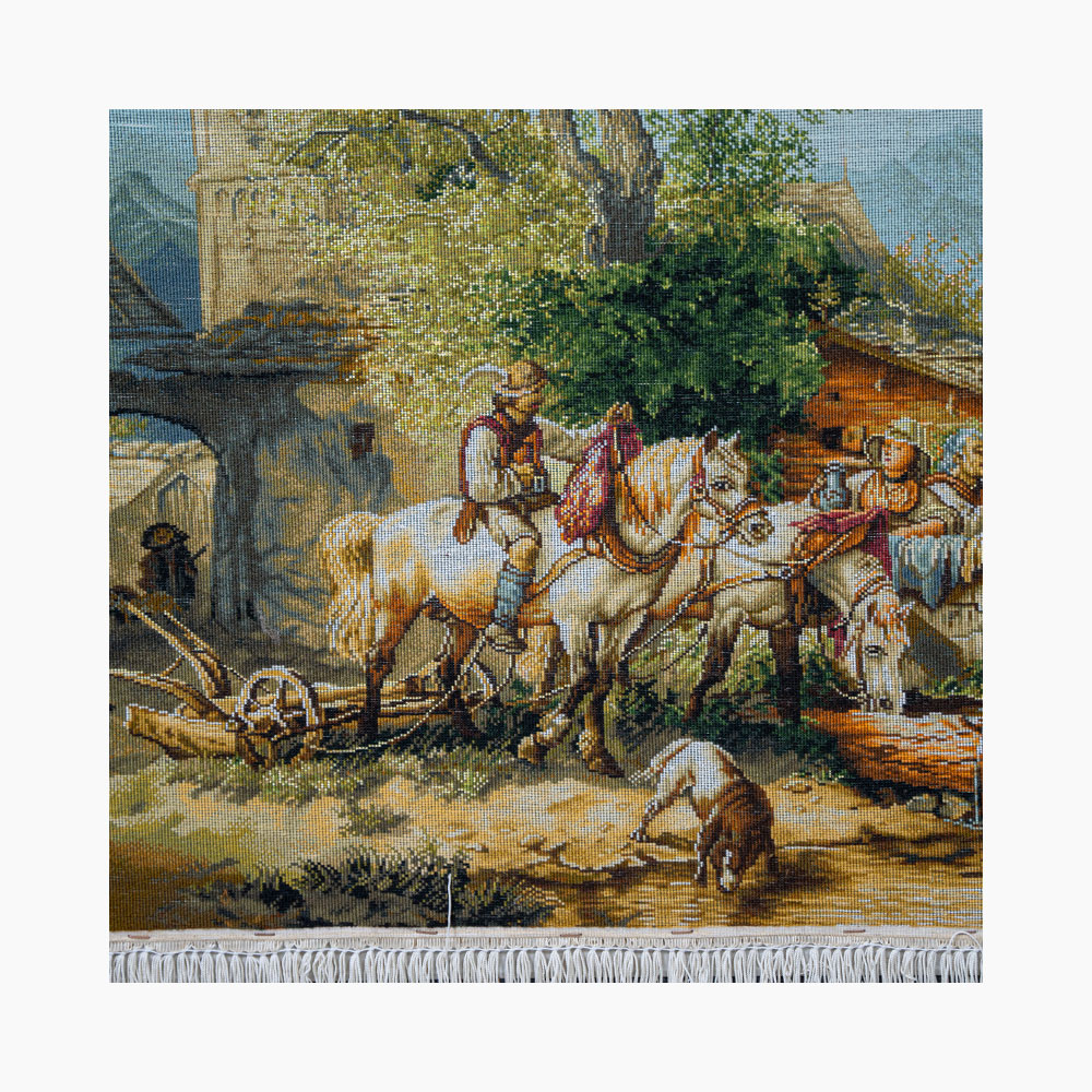 تابلوفرش «منظره دهکده اسپانیا» پلی است میان اصالت هنر ایرانی و لطافت مناظر اروپایی — اثری که زیبایی، سکون و فرهنگ را در قاب خود جاودانه کرده است.