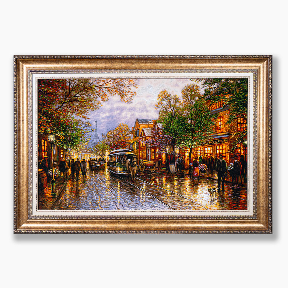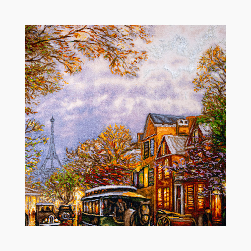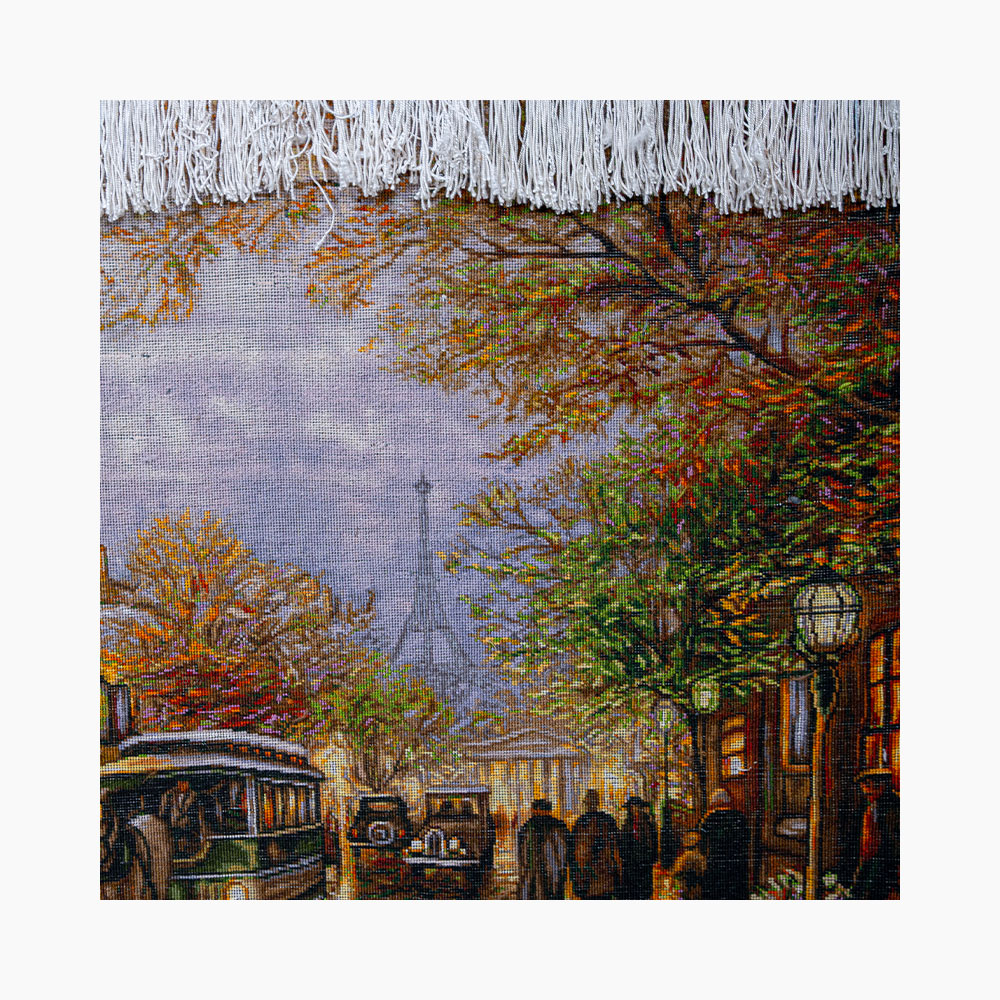 ۵۰ رج بافت ظریف و ترکیب رنگهای زنده و متوازن، منظرهای از خیابان شانزلیزه را خلق کرده است؛ جایی که نور، حرکت و زندگی در هر جزئیات آن جریان دارد.