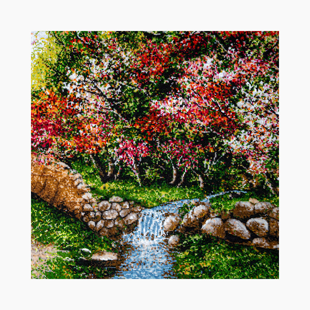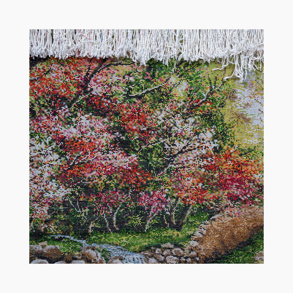 ۵۰ رج بافت ظریف سبب شده تا عمق و جزئیات منظره با وضوحی چشمنواز دیده شود. ترکیب رنگهای زنده و ملایم، احساسی از طراوت و آرامش را در فضا پخش میکند و هر نگاه به آن، یادآور هوای پاک و بوی بهار ایرانی است.