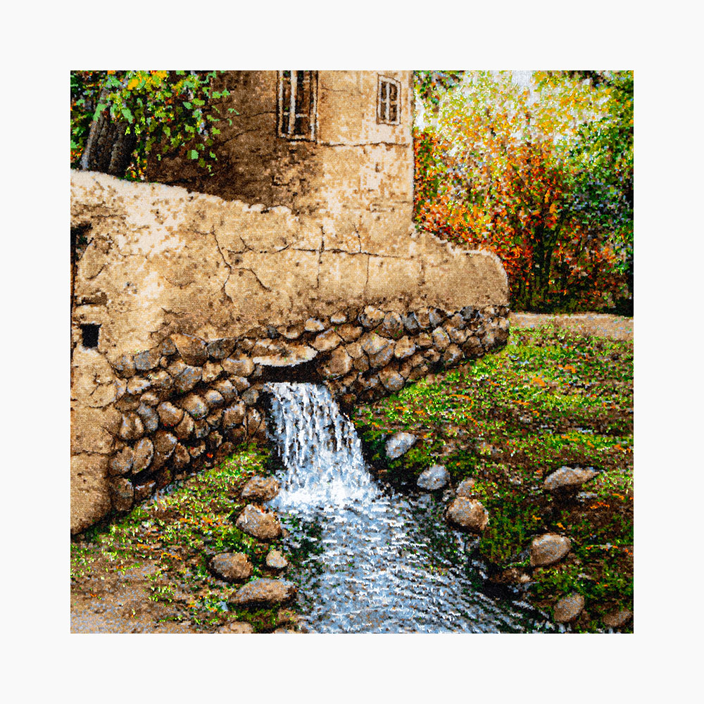 تابلوفرش «منظره کوچهباغ» از مجموعهی منظرههای سنتی ایرانی، تصویری شاعرانه از آرامش و زیبایی روستاهای ایران است. این اثر چشمنواز، با چلهی ابریشم، پشم مرغوب مرینوس و گلهای ابریشمی درخشان توسط هنرمندان تبریز بافته شده و در هر گرهی آن، دقت و عشق به طبیعت جریان دارد.