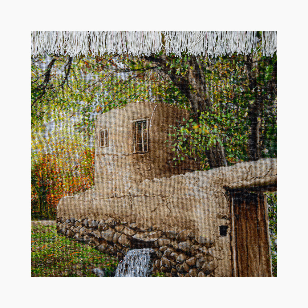 تابلوفرش «منظره کوچهباغ» از مجموعهی منظرههای سنتی ایرانی، یادآور روزهای آرام و طبیعت دلانگیز روستاهای ایران است. این اثر نفیس با چلهی ابریشم، پشم مرینوس و گلهای ابریشمی بهدست هنرمندان تبریز بافته شده و با ۵۰ رج بافت دقیق و امضای بافنده، اصالت خود را به رخ میکشد. هماهنگی رنگها و عمق تصویر، حس قدم زدن در کوچههای آفتابخوردهی شمال ایران را زنده میکند. ابعاد بدون قاب ۱۱۵×۷۰ و با قاب ۱۴۰×۹۵ سانتیمتر است.