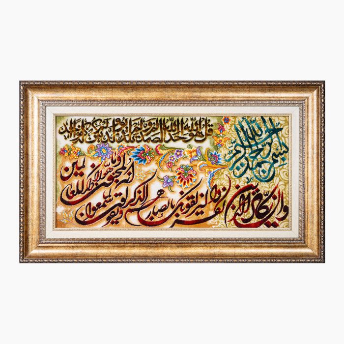 تابلوفرش امضادار «وان یکاد و سوره توحید» از مجموعهی مذهبی، اثری است که معنا و زیبایی را در کنار هم به اوج رسانده است.
