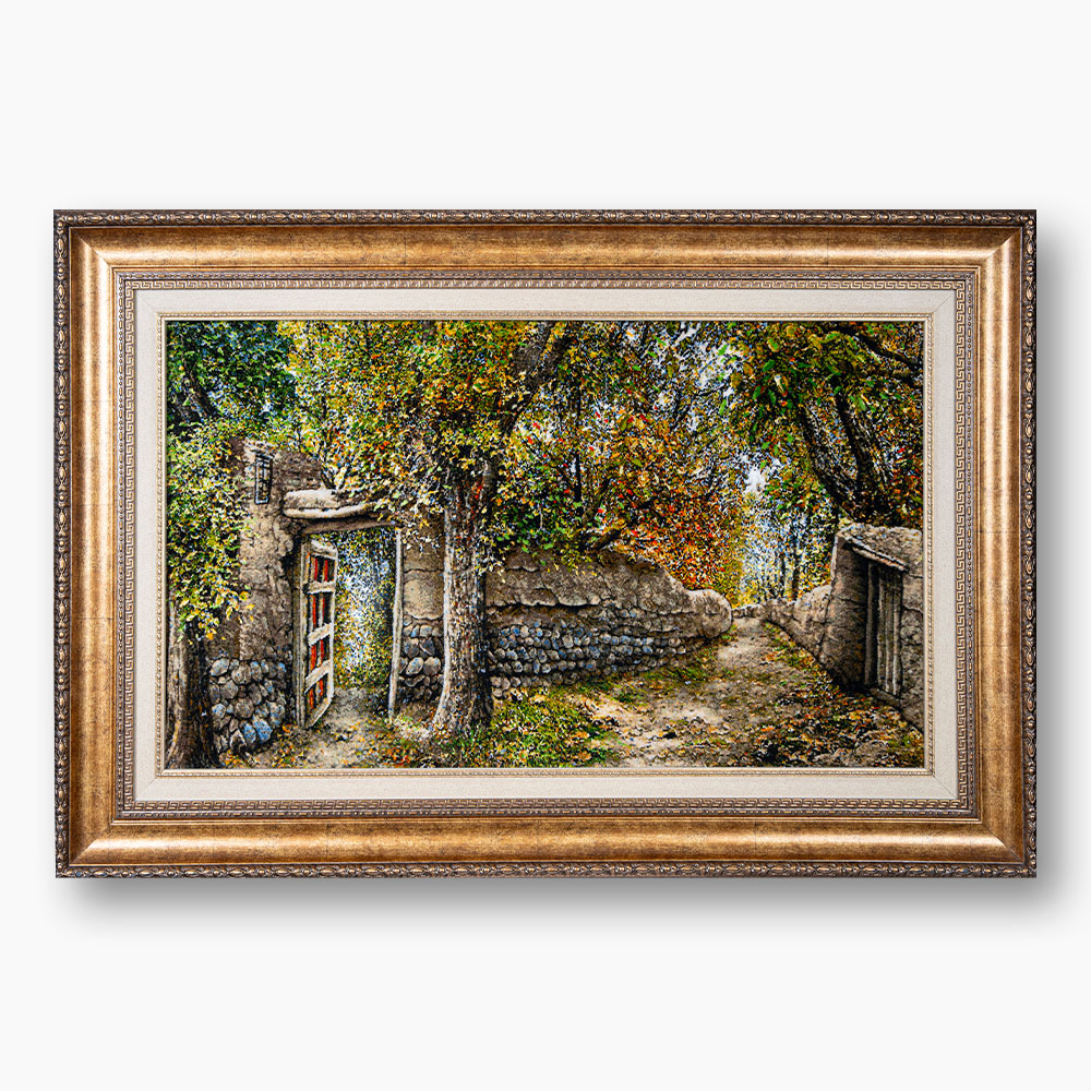 تابلو فرش دستبافت طرح کوچه باغ از مجموعه مناظر ایرانی، تصویری شاعرانه و دلانگیز از طبیعت زنده و سبز ایران را به نمایش میگذارد. این اثر با بافت اصیل تبریز و ترکیب چشمنوازی از رنگهای بهاری، حس طراوت و زندگی را در هر فضا زنده میکند.